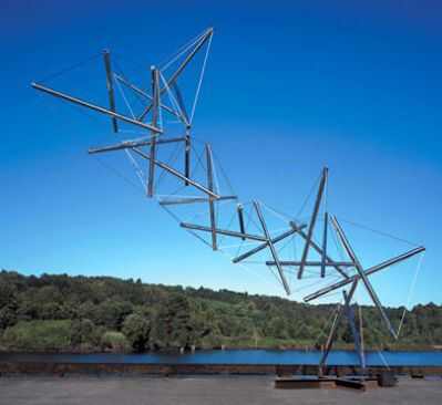 肯尼斯·斯内尔森是另一位在现代雕塑领域取得杰出成就的艺术家,是享誉美国的现代雕塑大师。我们几乎可以在任何一本记录美国现代城市景观雕塑的画册中看到他的作品——它们是用不锈钢管构成的轻灵跳跃的音乐性结构,丰富的视觉效果激活城市的公共空间,唤醒自然辽阔的寂静。