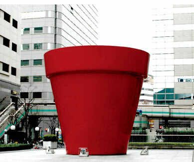 具体来说,将印第安那作品《LOVE》设置在面对新宿火车站的入口方向,这件作品是根据作者在1962年发表的绘画作品发展而成的。在灰色调的建筑群中,作品的大面积红色格外引人注目,它成为这个区域的标志性作品。利希滕斯坦的《东京的笔触》分为两部分设置在青梅街的人行道上,作品通过立体的形象表现画笔的运动痕迹。这样的造型使得作品具有多种理解的可能性,流畅的线条与缤纷的色彩软化了城市空间,使街头增添了几分活力。面对都厅大厦入口处的是丹尼尔·布伦的作品《从一个场所向其他场所――从一个素材向其他素材――向内以及向外的通路》,作品以建筑为“画布”,在建筑前设置了一排石柱,其表面是从六十年代以来,作者一贯采用的宽8.7cm的白色与赭石色的竖带交替条纹,这种条纹和建筑表面延伸出来的放射状条纹相连。作者通过这种语言在与建筑造型进行对话的同时,把建筑本身也转化为了自己的作品。