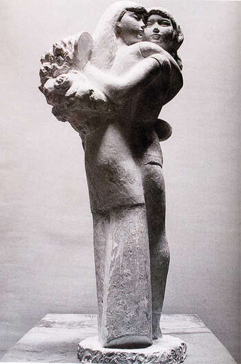 例五:《骨肉同胞》贺中令 石雕120×60×60cm 1979 第五届全国美展二等奖